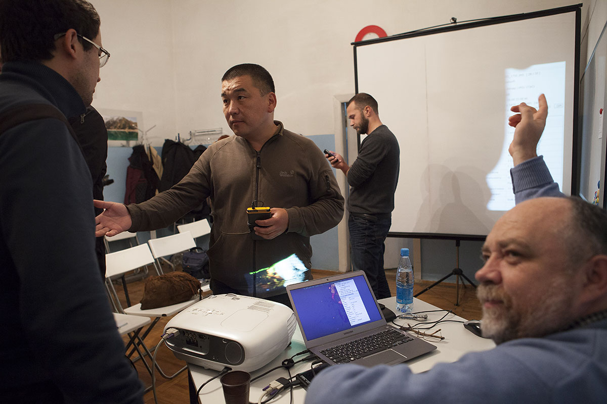 В начале октября 2012 года в Павлодаре (Казахстан) прошел мастер-класс Сергея Максимишина. Помимо местных фотолюбителей в мероприятии решили принять участие и фотографы из Омска. Среди них оказался автор Liberty.SU Павел Горшков, который попытался понять, в чем заключается феномен одного из самых известных фотографов России. Четыреста километров и границы двух государств Казахстана и России отделяют Павлодар от Омска. Можно сесть на автобус и через 7-8 часов вы уже в Павлодаре. Время в пути сильно зависит от длины очереди на границе. С отменой таможенного контроля прохождение паспортного кажется вполне формальным. Единственное недоумение вызывает временный характер организации пункта паспортного контроля с российской стороны – два строительных вагончика и сортир на ветру против современного казахстанского терминала с навесом, хотя и с таким же нужником на улице. Сказываются родовые черты. При въезде на территорию Казахстана появляется ощущение, что после шлагбаума природа меняется. Небо становится выше, другими видятся облака, а степь кажется еще шире и бескрайней из-за редкой и низкой растительности. Иртыш преследует вас, уходя и снова возвращаясь на всем протяжении пути. Географически вы движетесь к истокам. Праворульные машины и междугородние автобусы конца двадцатого века здесь норма. Водитель такого «видавшего виды» лайнера обязательно остановится у одного из трех рядом стоящих придорожных кафе, чтобы пообедать и дать размяться пассажирам после половины пройденного пути и стояния на границе. Не стоит и говорить, как благодарны хозяева «таверн» таким вынужденным остановкам. Расплатиться здесь можно рублями по курсу заведения, но поесть — только глазами, обнаруживая неважно приготовленное блюдо, запивая его чаем и разглядывая на столе клеёнку и мух, как данность. В этот раз я еду в Павлодар по приглашению одного из руководителей местного фото-клуба «ПРОявление» Альберта Шара, где должен пройти мастер-класс известного российского фотографа Сергея Максимишина. Здесь регулярно проходят выставки и бывают фотографы из России. У Павлодара есть своя фотографическая история советского периода. Фотолюбители большой страны объединялись в клубы — казанская «Тасма», московский «Новатор», Каунасский фотоклуб, Чебоксарский и др. Такой клуб «Орион» был и здесь. Расцвет его пришелся на 70-е — 80-е годы, когда он активно работал. Известность его во многом связывают с фотографом и бессменным неформальным лидером Едыге Ниязовым. Но его трагическая гибель, распад системы и размежевание унесло обитателей фотоклуба и славу в историю — как налетевший ветер. Из Омска со мной едут ещё три фотографа, чтобы поучаствовать в мастер-классе и послушать мэтра.: Виталий Агабабян, Елена Фишер и Виктория Морозова. Каждому из них я задал вопрос о том, чего каждый из них ждёт от этой встречи и зачем им репортерский курс Сергея Максимишина. Из всех троих только Виктория работает в газете, Виталий руководит фотоклубом и снимает свадьбы, а Елена учится на курсах фотографии. Тот же вопрос я задал потом ещё нескольким павлодарцам, записавшимся на семинар. Ответы всех были примерно одинаковыми: «любопытство», «нужен пинок», «узнать как строится работа фотографа-репортера», «получить рецензию на свои карточки». По замечанию моих друзей и попутчиков наша 