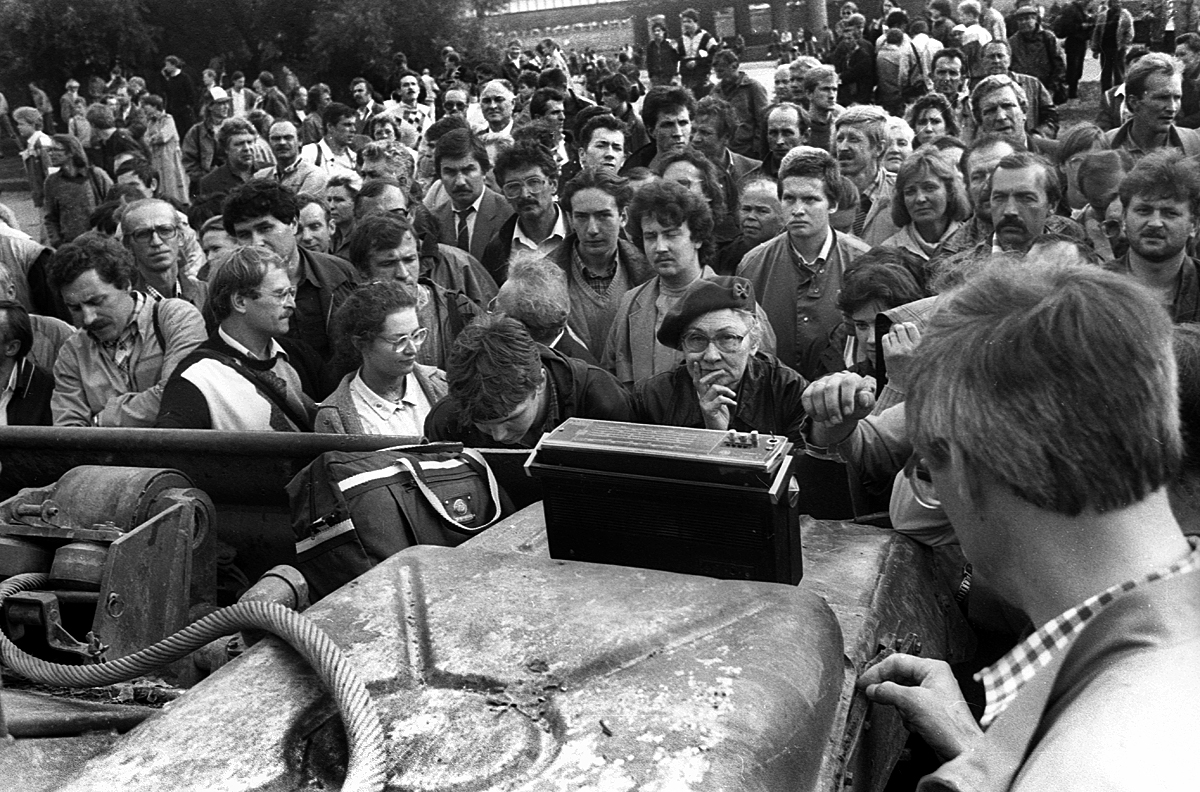 Олег Климов: «Память свободы» М-Журнал 04.08.2012 Liberty-фото Liberty.SU начинает публикацию фотографий Олега Климова о происходившем во время августовского путча 1991 года. Каждая фотография будет сопровождаться историей-воспоминаем участников или свидетелей тех событий. Мария, пенсионерка: «19 августа 1991 года я ехала, как обычно, на работу и увидела, как идет бронетехника по улицам Москвы. Это было страшное зрелище, но паника меня охватила тогда, когда выяснилось, что трое моих коллег взяли отгулы по «семейным обстоятельствам» и мой зять тоже ушел из дома. Когда пришла с работы, стала пытаться что-то выяснить — безуспешно — радио не работало, телевидение молчало — и что вообще происходит, было совершенно не понятно. Всю ночь слушала «Эхо Москвы», которое с завидным постоянством глушили. Помню, главным тогда был Сергей Корзун, а Алексей Венедиктов был замом у него — и вот тогда они вдвоем всю ночь нервничали — и я вместе с ними… Зять не пришел ни в первую ночь, ни во вторую — нервы у меня были просто на пределе. Утром 21 августа я пошла на детскую кухню — шла как раз по переходу на пересечении Садового кольца и Нового Арбата — и увидела тот страшный троллейбус. Он был весь перекорежен. Он долго стоял потом. И помню, что еще была кровь на асфальте, много крови — и отовсюду шли люди с цветами… Страшно было до самого последнего момента — ведь чем дело кончится никто не знал, а как поведет себя армия — тем более. Около Белого дома все время были голодные люди — им местные жители приносили еду и горячий чай в термосах. Потом еще дождь начался и всем выдали зонтики и противогазы. До самого последнего дня, когда толпа людей пошла на площадь Дзержинского с длинным полотнищем — трехцветным флагом — весь город был в напряжении… А когда этих мальчиков хоронили — один ведь совсем ребенком был — вообще жутко было… Такое было время…» Фото: Олег Климов ДЕЛИТЕСЬ ИНФОРМАЦИЕЙ – ДЕЛАЙТЕ МИР СВОБОДНЫМ:
